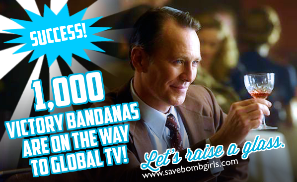 We have made it! Our 1,000 Victory Bandanas are on the way to Global TV! They should arrive on Monday. We included a letter making the case for why Bomb Girls deserves a 3rd season. We’re curious if it will elicit any kind of response from the Shaw Media executives.